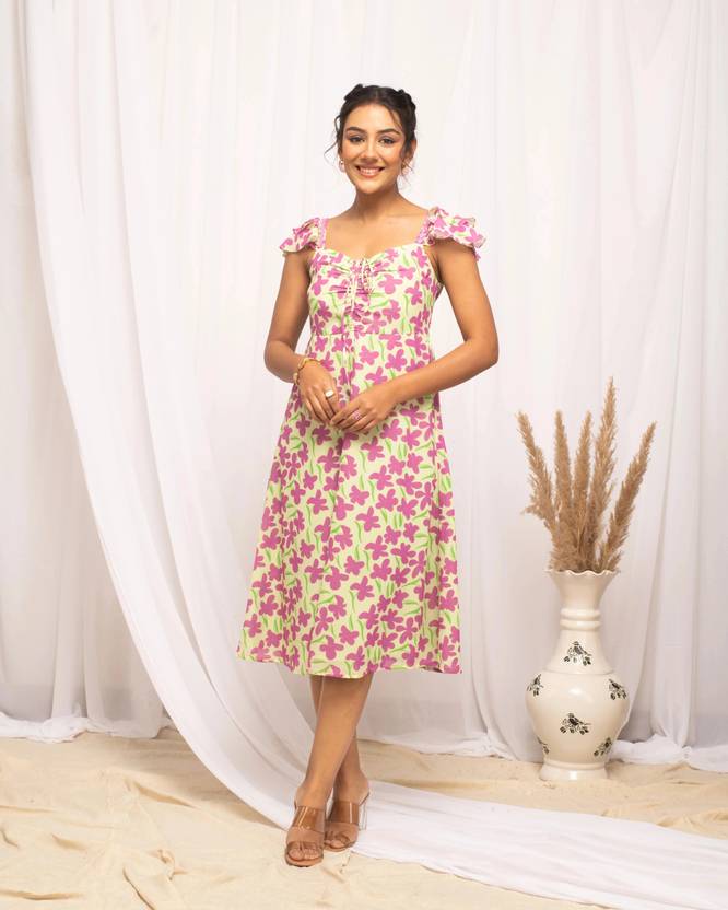 Dress Colour :- Light Pink, Dress Febric :- Georgette with Crepe Lining, Style :- Fit & Flare, Work :- Floral Print, Material Care :- Machine Wash