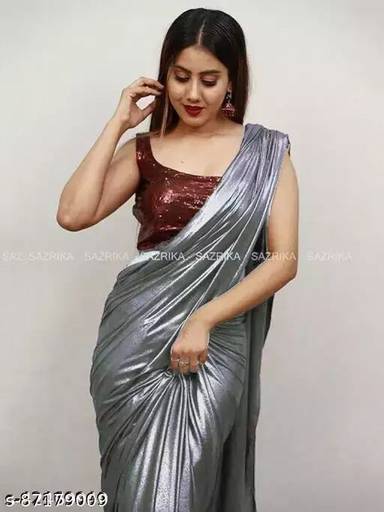 Suchi creation Solid/Plain Bollywood Lycra Blend Saree (Grey)