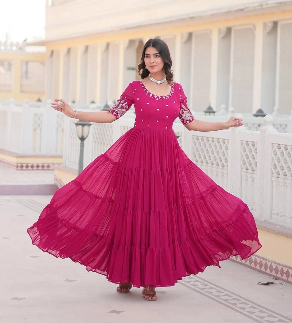 Gown Fabrics & Work :- Faux Georgette With Rich Dot Printed work