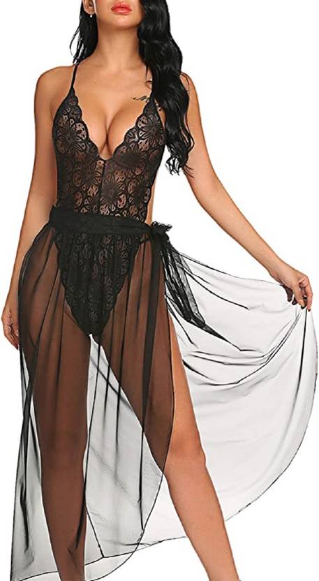 Baby doll nightwear lingerie. Transparent lace and mesh material , cute satin bow in front adds a subtle sexy touch. Babydoll nightwear lingerie comes with a matching g string . This is a free size babydoll nightwear lingerie, will fit sizes Bust Waist Babydoll nightwear dresses creates a beautiful and attractive look or an innocent but naughty look that cannot just add an ageless sex appeal but also completely brings your style to another angle. Just have a glance at this mesmerizing sheer floral lace baby doll outfit and you will fall for it the very next moment. The seductive outfit has perfect design to support the bust perfectly. If tempting transparent dresses lure you, this product is your ultimate pick. It comes with a complimenting thong. it's best fit for 30-36 bust size.