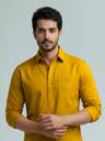 FireFish Men Solid Cotton Blend A-line Kurta (Yellow)