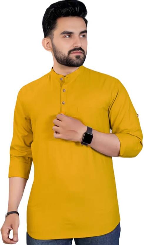 Men Solid Pure Cotton Straight Kurta (Beige)