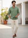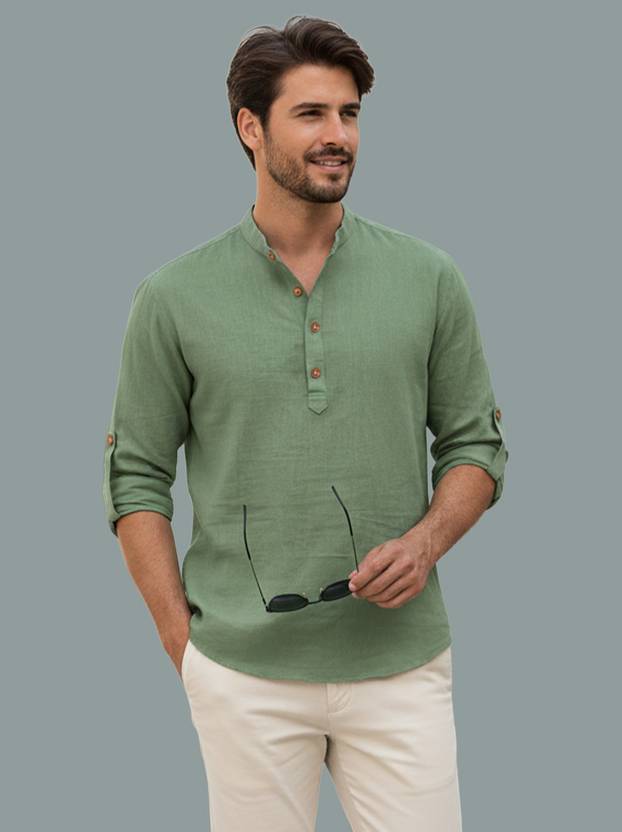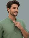 Men Solid Cotton Blend A-line Kurta (Light Green)