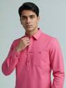 FireFish Men Solid Cotton Blend A-line Kurta (Pink)