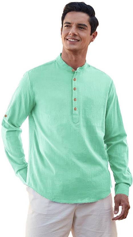 This Cotton Blend short kurta is perfect for men who value style and comfort. Its versatile design makes it ideal for any occasion—festivals, parties, or casual outings. Product Details 📋 👨‍🦰 Gender: Men 🎨 Pattern: Solid 🧵 Design Type: Plain 🔘 Closure: Button 👕 Sleeve: Full Sleeve (Roll-Up Option) ⬆️ Waist Rise: Mid-Rise 🪡 Collar: Mandarin/Chinese ✂️ Hemline: Curved 🌿 Fabric: Cotton Blend 📏 Product Length: Short 📦 Pack of: 1 Material & Care 🧺 Fabric: Cotton Blend Wash: Suitable for hand wash and machine wash. How to Style 🎯 Pair it with dark-wash denim or linen trousers for a casual look. Dress it up with a pair of churidar or slim-fit pants for festive occasions. Add leather sandals or loafers and a wristwatch for a classy finish. Roll up the sleeves for a relaxed vibe during daytime events. This short kurta seamlessly blends traditional elegance with modern styling, making it a wardrobe essential for every man! 👌"