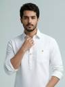 This Cotton Blend Short Kurta is perfect for men who value style and comfort. Its versatile design makes it ideal for any occasion—festivals, parties, or casual outings. Product Details ?? ????? Gender: Men ?? Pattern: Solid ?? Design Type: Plain ?? Closure: Button ?? Sleeve: Full Sleeve ?? Waist Rise: Mid-Rise ?? Hemline: Curved ?? Fabric: Cotton Blend ?? Product Length: Short ?? Material & Care ?? Fabric: Cotton Blend Wash: Suitable for hand wash and machine wash. How to Style ?? Pair it with dark-wash denim or linen trousers for a casual look. Dress it up with a pair of churidar or slim-fit pants for festive occasions. Add leather sandals or loafers and a wristwatch for a classy finish. Regular the sleeves for a relaxed vibe during daytime events. This shirt kurta seamlessly blends traditional elegance with modern styling, making it a wardrobe essential for every man! ??