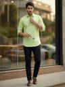 FireFish Men Solid Cotton Blend A-line Kurta (Green)