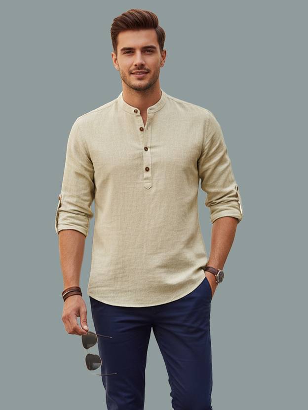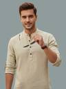Men Solid Cotton Blend A-line Kurta (Beige)