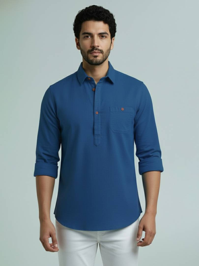 Upgrade your ethnic wardrobe with this men’s short kurta, crafted from premium breathable fabric for all-day comfort. Designed in a regular fit, this kurta features a classic mandarin collar, full/half sleeves, and a stylish straight hem, making it perfect for casual wear, festive occasions, office wear, and daily use. Pair it with jeans, chinos, or pyjamas for a versatile and modern ethnic look.