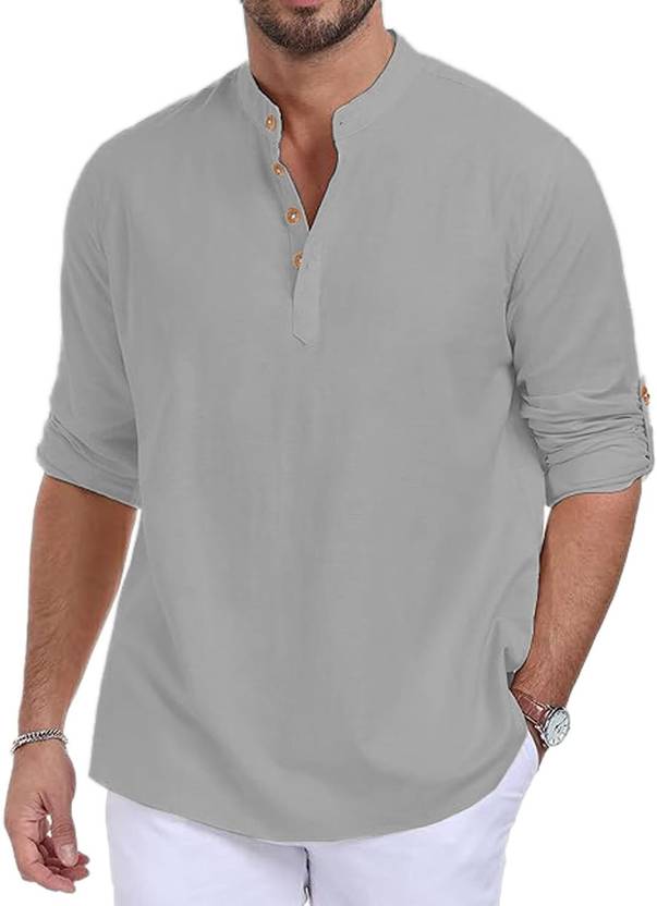 Men Solid Cotton Blend A-line Kurta (Grey)
