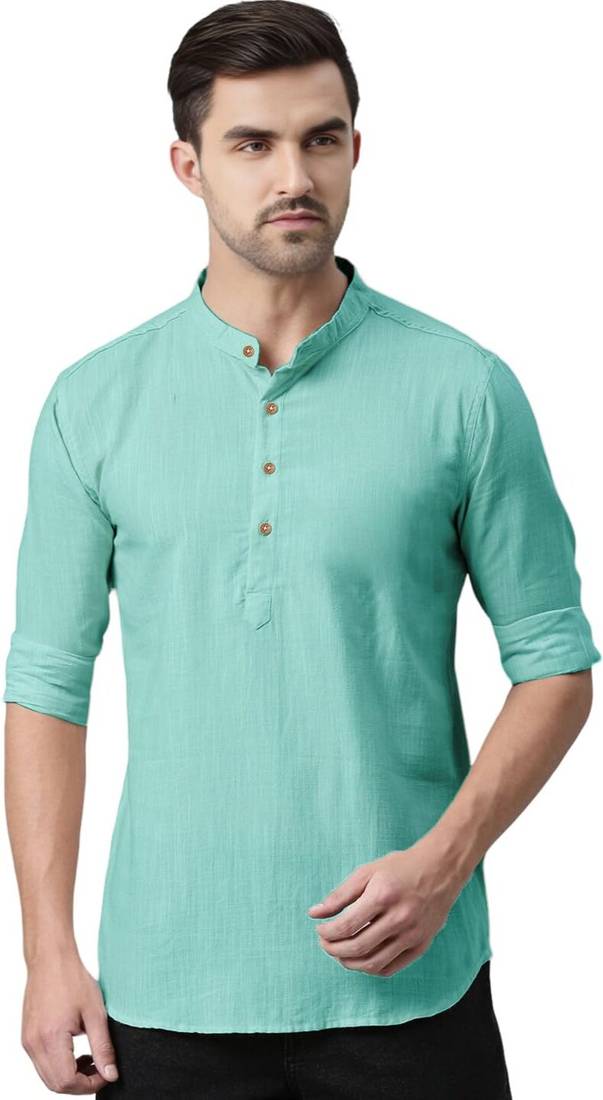 Upgrade your wardrobe with this cotton Blend short kurta, crafted for men who prioritize style and comfort. With its timeless design, this kurta effortlessly complements any occasion—be it festivals, parties, or casual outings.