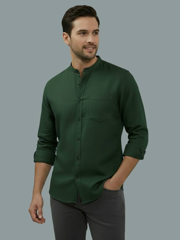 FireFish Men Slim Fit Solid Mandarin Collar Casual Shirt