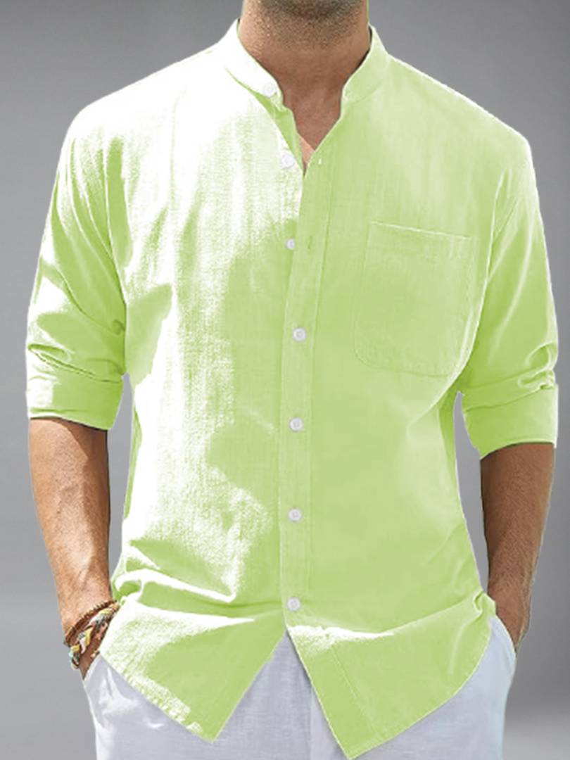 Yugnik Men Slim Fit Solid Mandarin Collar Casual Shirt