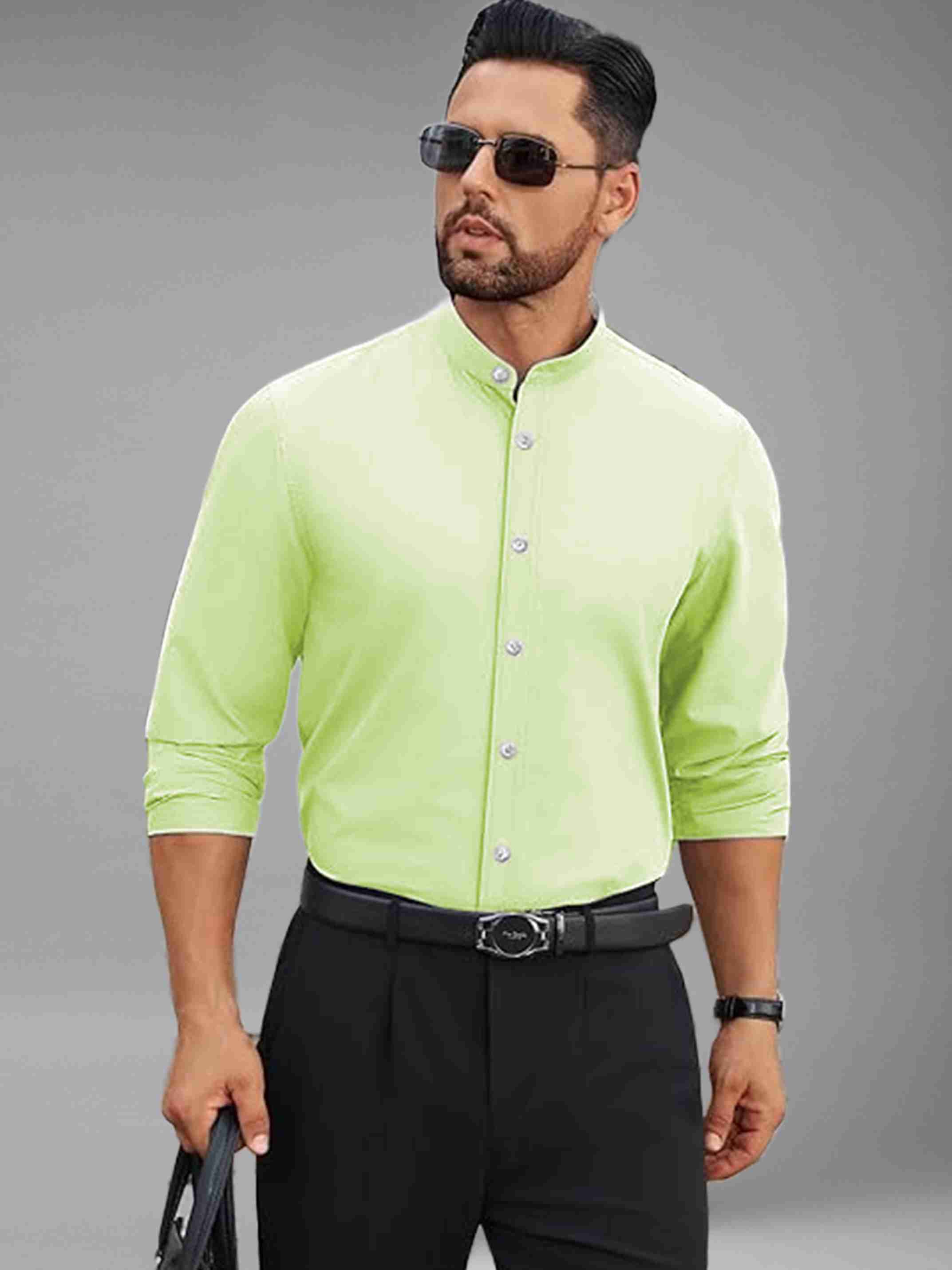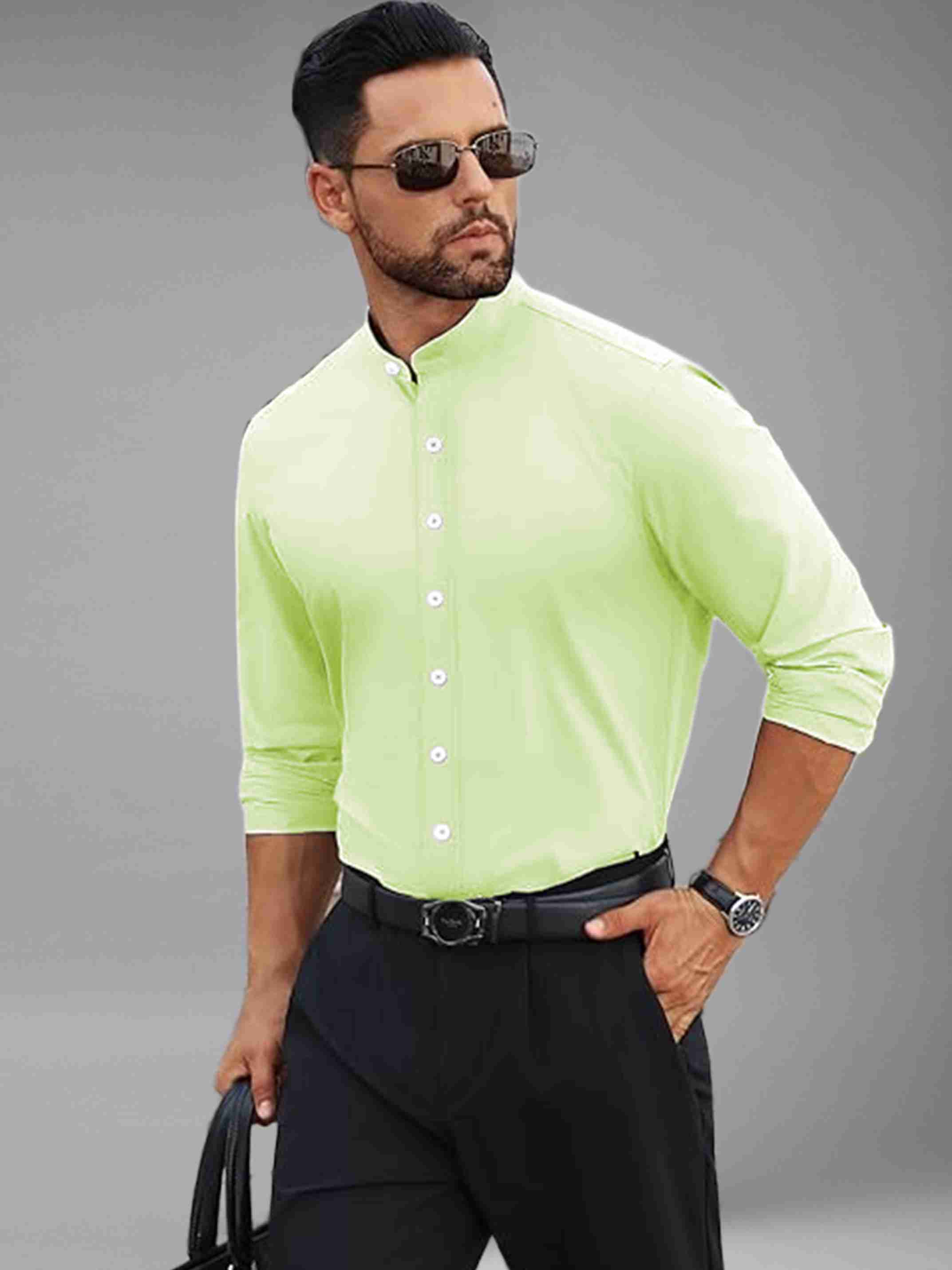Men Slim Fit Solid Mandarin Collar Casual Shirt