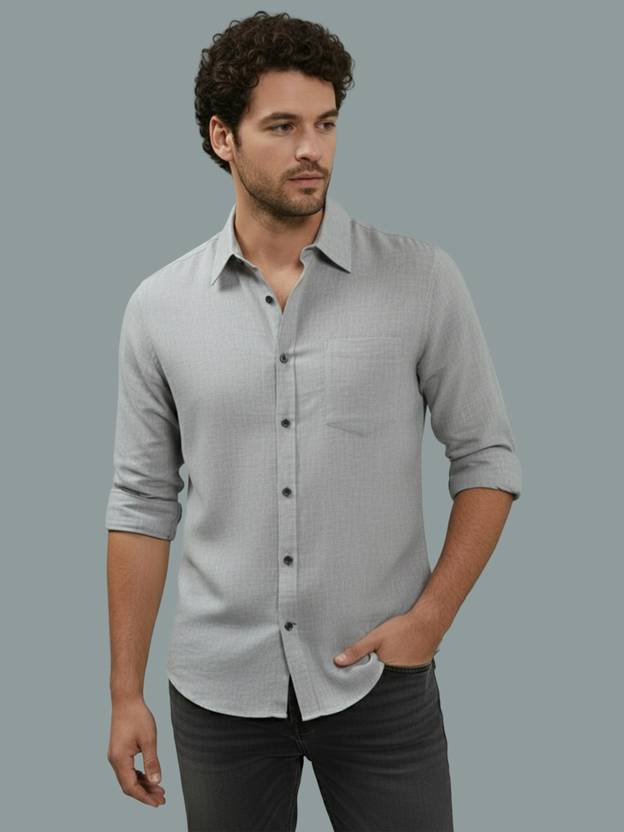 Men Slim Fit Solid Spread Collar Casual Shirt