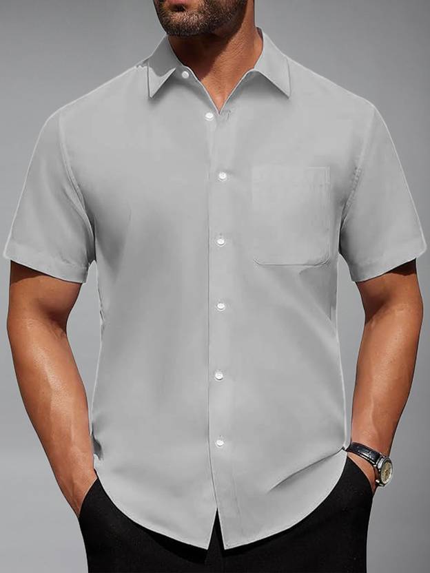FireFish Men Slim Fit Solid Spread Collar Casual Shirt