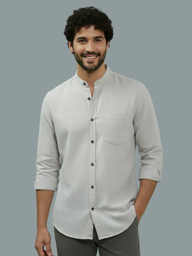 Yugnik Men Slim Fit Solid Mandarin Collar Casual Shirt