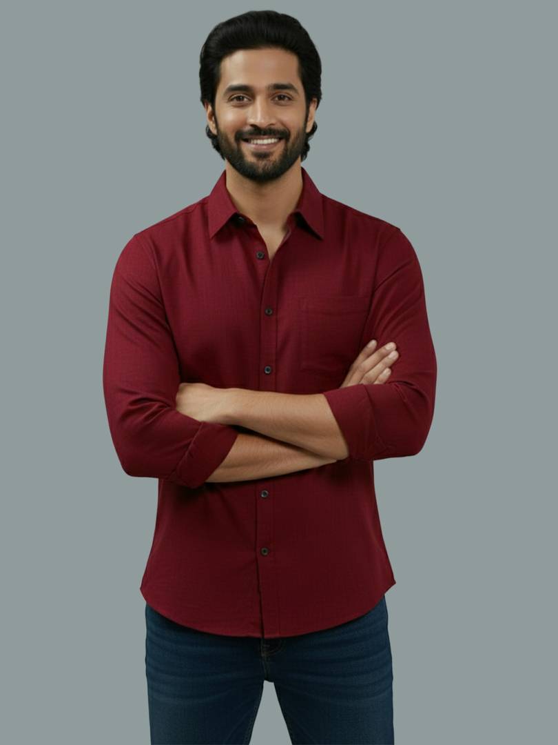 Men Slim Fit Solid Spread Collar Casual Shirt