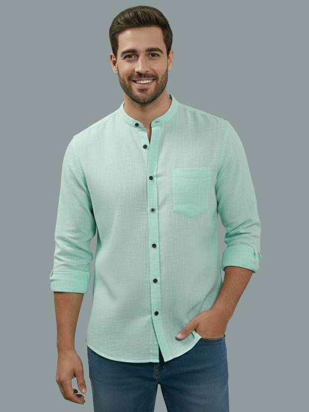 Men Slim Fit Solid Mandarin Collar Casual Shirt