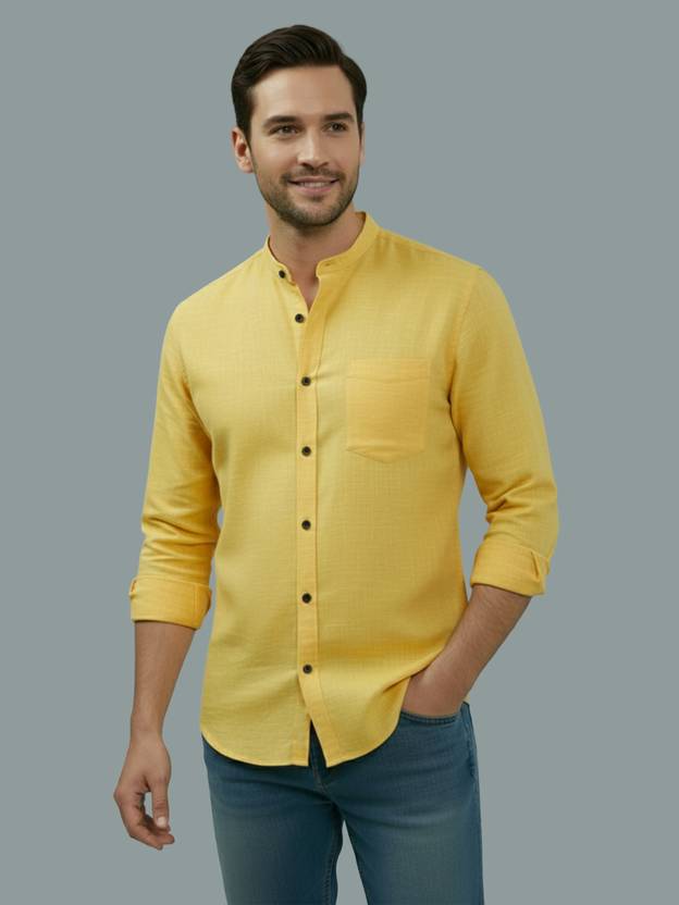 Men Slim Fit Solid Mandarin Collar Casual Shirt