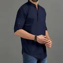 Men Solid Cotton Blend Straight Kurta (Dark Blue)