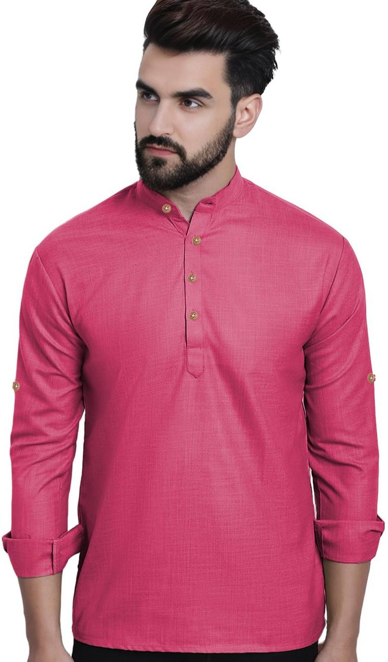 Men Solid Pure Cotton Straight Kurta (Beige)