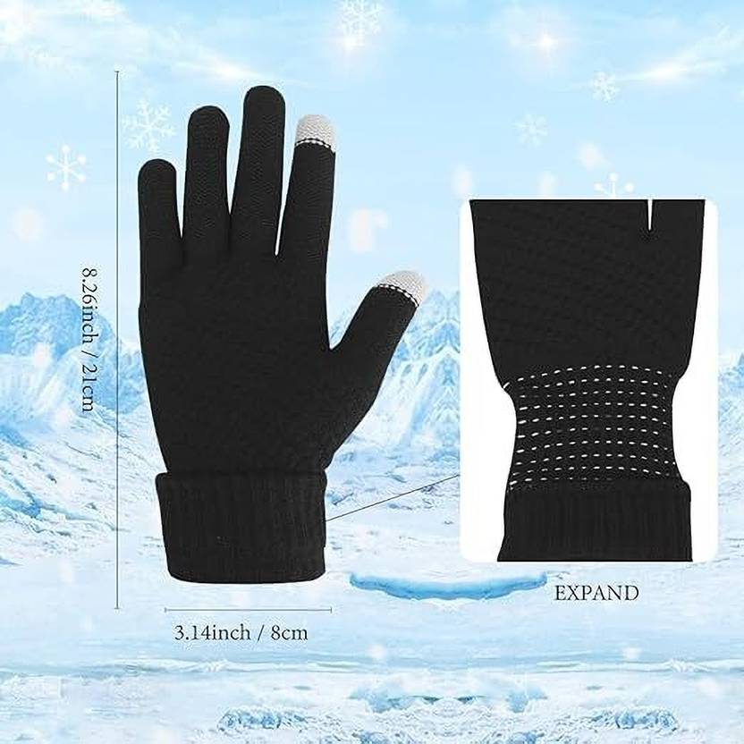 Touch screen and elastic cuff design: the thumb, index finger, and middle finger design with touch screen function, so you can use the cell phone tablet, or other electronic devices without taking off the gloves, practical and convenient; thickened elastic wrist part can be knit gloves close to the wrist skin to resist the cold wind without wearing your skin