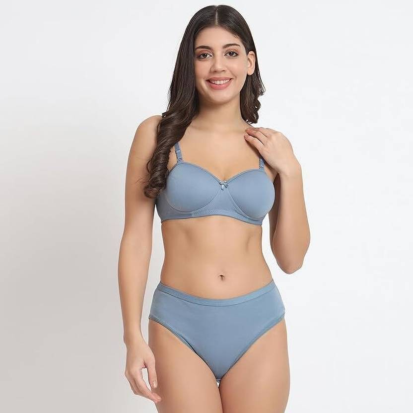 Redefine comfort and elegance with this thoughtfully crafted bra panty set. Featuring premium-quality fabric, it ensures breathability and softness against the skin. The bra offers padded coverage and wire-free design for natural shape, while the panty supports with a mid-rise and smooth waistband. Suitable for daily use and long hours, this set is an everyday essential. Perfect for women who want comfort, functionality, and elegance in their lingerie collection.