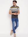 Men Printed, Striped Polo Neck Pure Cotton Multicolor T-Shirt