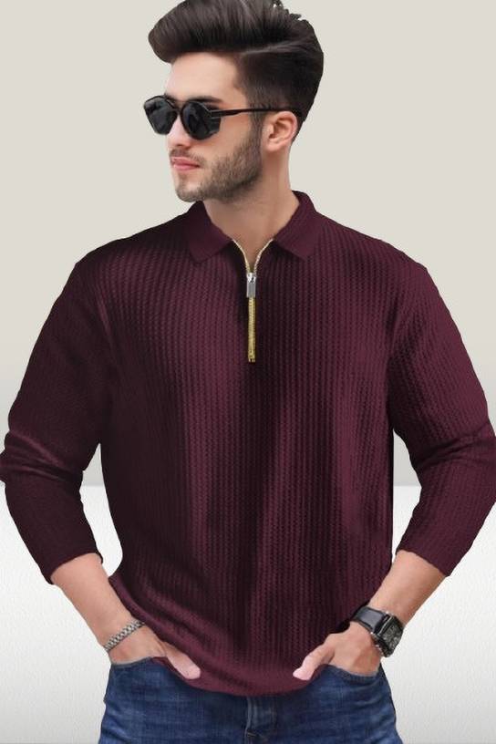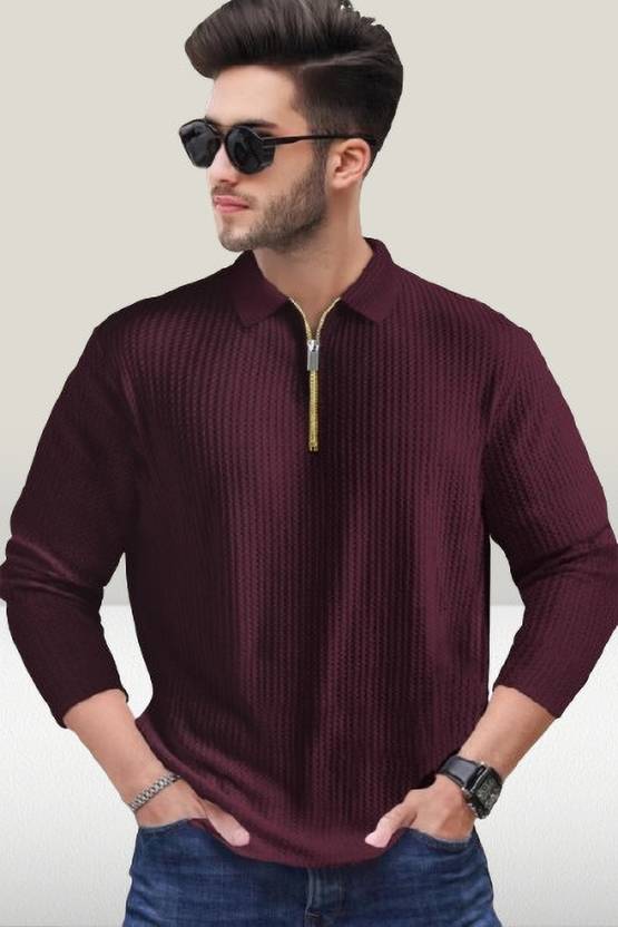 FIRST POSTION gives you a polo neck full sleeves casual wear regular fit solid patterns tshirt for men