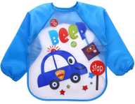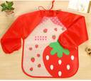 FIRST TREND Baby Bibs, Long-Sleeved Waterproof Children's Feeding Apron Cartoon Print Babies (Red Strawberry)