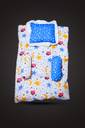 First Vision Polycotton Baby Bed Sized Bedding Set (Blue, White, 1 Sleeping Bag, 1 Mosquito Net, 1 Mattress, 2 Bolsters, 1 Pillow)
