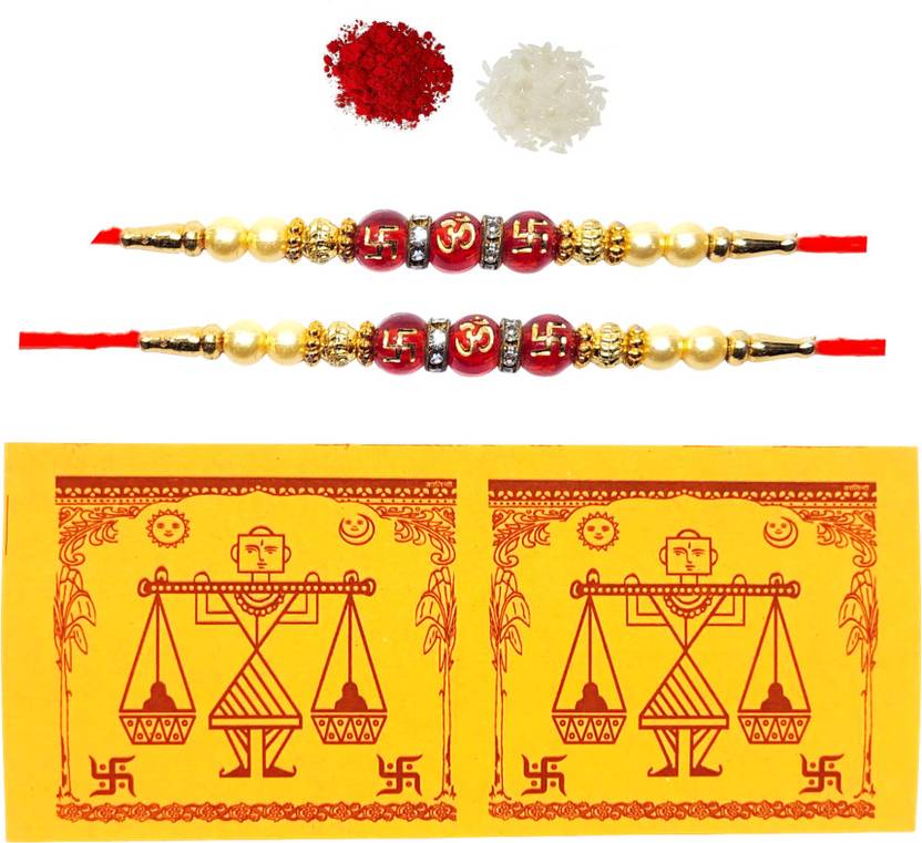 OM Swastik Rakhi with Roli Chawal with free Shravan ji Wall Sticker