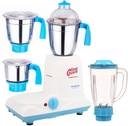 Voltage : 220 - 230 V, 50Hz. ,Input : 750 Watts, Capacity : 1 Juicer Jar without filter 1.5 Litre, 1 Middle jar, Chuntey Jar 100 gm, 1 Medium Jar, Speed Control : 3 Speed with incher, Material Of Housing : ABS Plastic, Blade : SS Polish, Covers : Polycarbonate {Unbreakable}