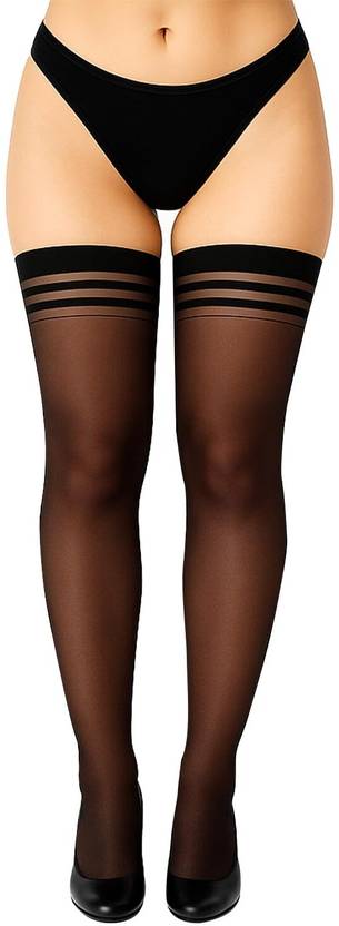 [CLASSIC EVERYDAY THIGH HIGH STOCKINGS]: These plain thigh high stockings are designed to offer a timeless, elegant look suitable for daily wear or special occasions. With a clean top and smooth sheer finish, they provide a polished silhouette that enhances your legs without drawing unnecessary attention., [COMFORTABLE ELASTIC TOP BAND]: Featuring a wide elastic band, these stockings, stockings for girls, stockings for women sexy, stockings for women, black stockings for women stylish, black stockings, stockings for women black, stockings for women summer wear stay up securely while maintaining a gentle, comfortable grip on the thighs. They’re ideal for long hours of wear, staying in place without rolling or digging in., [SOFT, SHEER & BREATHABLE FABRIC]: Crafted from lightweight, sheer material, these stockings offer a soft touch and breathable feel. The fabric provides a smooth look under clothing and keeps you cool and comfortable throughout the day.