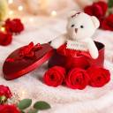 Cute Heart Shape Gift Box with Teddy & Artificial Beautiful Rose
