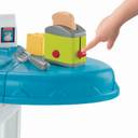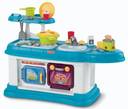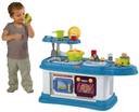 This vibrantly colored kitchen set will keep your little ones engrossed in their role plays. They will love to turn the knobs, explore various shapes, listen to fun sounds, and much more. They will also enjoy playing with the oven, microwave, and pop-up toaster.
