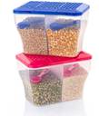 Store a variety of food items like pickle, cereals, pulses, spices, dry fruits, snacks, salt, sugar, coffee, tea, vegetables and much more in these 2 section containers. These containers are easy-to-use and are see-through containers which makes them practical for everyday use and helps in identifying food items without having to open them. These containers are BPA free, thus keeping you safe .