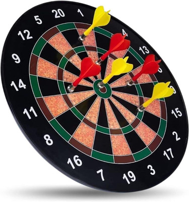 FitBeast DART BOARD DOUBLE FACED 15 INCH WOODEN WITH 6 DARTS FOR KIDS Soft Tip Dart  (Pack of1)