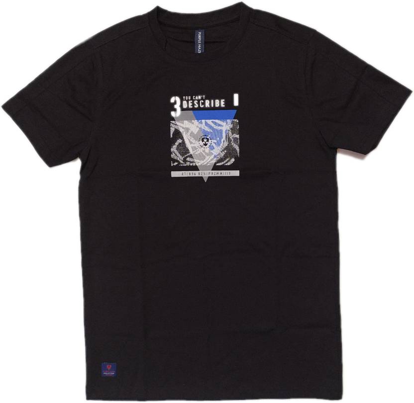 Men Printed, Typography Round Neck Pure Cotton Black T-Shirt
