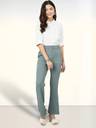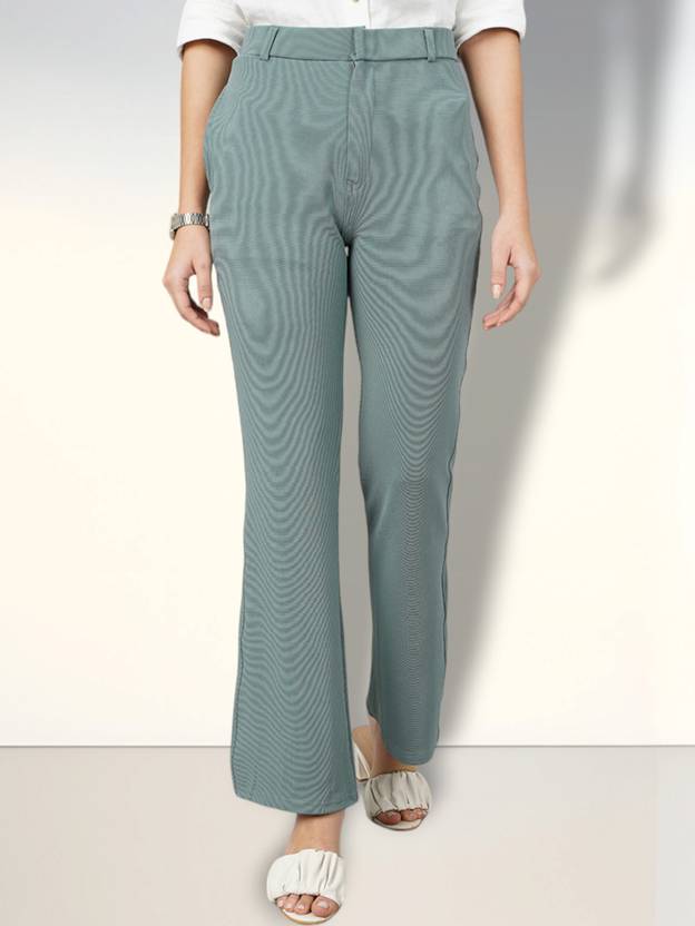Step into sophistication with our Elevated Elegance Women's High-Rise Flat-Front Boot Cut Trousers, a must-have addition to any modern woman's wardrobe. Available in a range of elegant colors including Black, Pista, Navy Blue, Bottle Green, Cream, and Dark Grey, these trousers combine timeless style with contemporary design elements. Crafted with a focus on both style and comfort, our boot cut trousers feature a high-rise silhouette that accentuates your curves while elongating your legs for a flattering look. The high waist design offers a comfortable fit that hugs your figure in all the right places, giving you confidence with every step. Whether you're heading to the office or meeting friends for brunch, these versatile trousers are perfect for any occasion. Pair them with a crisp blouse and heels for a polished office ensemble, or dress them down with a casual tee and sneakers for a chic weekend look. Designed with attention to detail, our trousers boast a sleek flat-front finish for a streamlined appearance. The clean lines and tailored fit ensure a sophisticated silhouette that exudes elegance and refinement. Constructed from premium materials, our boot cut trousers are not only stylish but also durable and long-lasting. With quality craftsmanship and attention to detail, these trousers are designed to withstand the test of time, making them a staple piece in your wardrobe for years to come. Elevate your style game with our Elevated Elegance Women's High-Rise Flat-Front Boot Cut Trousers. Choose from our range of stunning colors to suit your personal style and make a statement wherever you go.