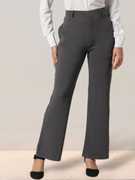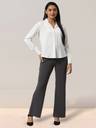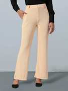 Step into sophistication with our Elevated Elegance Women's High-Rise Flat-Front Boot Cut Trousers, a must-have addition to any modern woman's wardrobe. Available in a range of elegant colors including Black, Pista, Navy Blue, Bottle Green, Cream, and Dark Grey, these trousers combine timeless style with contemporary design elements. Crafted with a focus on both style and comfort, our boot cut trousers feature a high-rise silhouette that accentuates your curves while elongating your legs for a flattering look. The high waist design offers a comfortable fit that hugs your figure in all the right places, giving you confidence with every step. Whether you're heading to the office or meeting friends for brunch, these versatile trousers are perfect for any occasion. Pair them with a crisp blouse and heels for a polished office ensemble, or dress them down with a casual tee and sneakers for a chic weekend look. Designed with attention to detail, our trousers boast a sleek flat-front finish for a streamlined appearance. The clean lines and tailored fit ensure a sophisticated silhouette that exudes elegance and refinement. Constructed from premium materials, our boot cut trousers are not only stylish but also durable and long-lasting. With quality craftsmanship and attention to detail, these trousers are designed to withstand the test of time, making them a staple piece in your wardrobe for years to come. Elevate your style game with our Elevated Elegance Women's High-Rise Flat-Front Boot Cut Trousers. Choose from our range of stunning colors to suit your personal style and make a statement wherever you go.