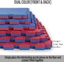 Convert any area into a safe and convenient workout area with the Vaquita Exercise Puzzle Mat. The interlocking pieces are quick and easy to assemble so you can set it up and take it apart easily. Great for home, gym, garages and basements and even on the carpet to protect floors, reduce noise, and make floor exercises more comfortable. The dense, textured foam offers the perfect base for weight lifting benches, dumbbells, kettlebells, and other workout equipment. Train like a pro with Vaquita. The dense foam provides more room and cushion than yoga mats or folding exercise mats, allowing you to spread out with weights or a bench or perform a variety of workouts. It is great for floor exercises like push-ups, sit-ups, setting a bench on for bench presses or foam rolling and stretching and can even be used for yoga or Pilates. The 20 MM inch thick flooring also protects floors from stationary bikes, weights, equipment, and sweat. Vaquita Exercise mats are made from non-toxic EVA foam and conform to the safety requirements. They are free of form amide, formaldehyde, lead, BPA, latex, phthalates. These puzzle mats are waterproof and can be cleaned with a spray mop or soapy cleaning solution. They perform best on hard surfaces like hardwood, tile, or concrete. Mats are designed with the non-slip pattern surface on one side and flat surface on another side. The flat side faces floor.