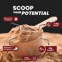 This whey, delivers 36g of ultra-filtered whey isolate & concentrate for clean muscle gains without compromising quality. It’s free from artificial flavours, hidden sugars, and fillers, ensuring pure, clean nutrition. With 9 essential amino acids and 5.91g of BCAAs, it supports muscle growth, recovery, and endurance, while digestive enzymes promote better absorption and zero bloating. Plus, its authentic Double chocolate flavour is naturally derived no synthetic additives, just superior performance.