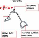 FITSY seated row handle is manufactured from iron and high-polished chrome finish for a long lasting and durable construction. Heavy duty frame for long lasting durability even with extensive usage. The double D handle is designed as a close grip attachment to facilitate back and shoulder development. Special designed tapered designed handles for better grip and feel. The ergonomic V-shape design of this rowing bar ensures a full range of motion during biceps and triceps exercises. Concentration grip facilitates back and latissimus development. Ideal for a full stretch on your lats when doing seated rowing and working your lower lats when performing overhead pull downs. Ergonomically designed tricep handle for superior comfort and grip.Knurled handles for grip even with moist hands to ensure a confident grip no matter how intense your workout is. Strong welds for high durability and optimum strength. DIMENSION- 52 x 15.5 x 31 x 19 cm. Package Contents 1 Double Stirrup D Handle