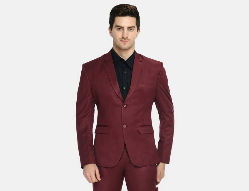 FIVEFEB Solid Single Breasted Wedding, Formal, Casual Men Blazer (Maroon)