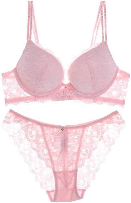 Bra & Panty Set Self Design Pink Lingerie Set