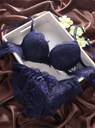 Bra & Panty Set Self Design Dark Blue Lingerie Set