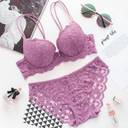 Flowers designed embroidery purple lingerie set