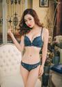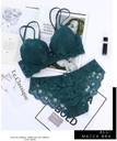 Flowers designed embroidery dark green lingerie set